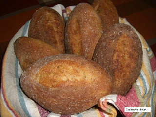 Hoy es el primer día de mi querida masa madre líquida de Eric Kayser, que explica muy bien Maribel en su blog L'Artesà.Me he decidido a probarlo primero con estos panecillos integrales. La receta la he modificado un poco, para que se adaptara al método Montignac. Os pongo la receta original y al final como siempre, la adaptación al método. Me ha encantado ver el proceso...y lo bonitos que han quedado..Probarlos, no será hasta mañana en el desayuno, pero seguro que están muy buenos.