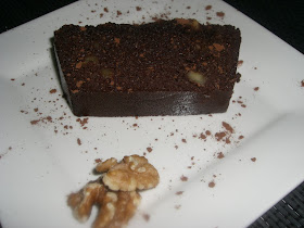 Para esta receta, he utilizado el doble de cantidad de la receta del Pastel de chocolate Alain ducasse, y le he puesto nueces a discreción, según vuestro gusto...unos 40 gramos aproximadamente, a trocitos. Podeis poner, por supuesto cualquier otro frutos seco, avellanas, almendras, pistachos...Ponerlo en un molde de plumcake, y quedarás unos pedacitos muy buenos.
