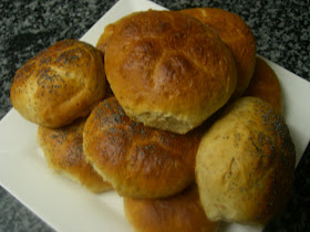 naans especiados, que ya publiqué la receta hace unas semanas y unos bollitos de leche...En estas semanas estoy teniendo problemas con unas llagas o aftas en la boca, y un buen resfriado...así que me apetecía algún panecillo tierno y esponjoso. Yo casi siempre elaboro pan integral, así que busqué en ese libro y no encontré ninguno...si brioches y otros panes del estilo pero no era lo que iba buscando. Al final opté por el libro del Aprendiz de panadero, y allí encontré una receta de pan de leche, con tres versiones distintas. Os voy a poner la receta que yo he elaborado con pan integral.