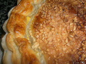 La capa externa del hojaldre con el azúcar y las almendras, es de auténtica lujuria. Mira que yo se supone que estoy a dieta y no pruebo muchas de las cosas que les preparo, pero con esta torta no pude resistirme...